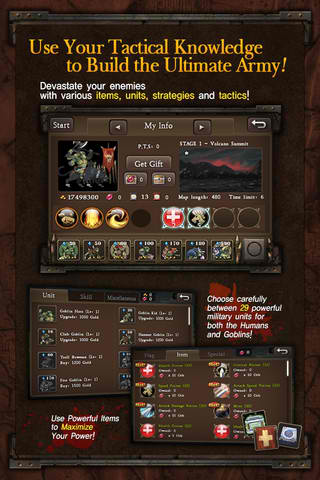 As in Crystal War, players will find themselves leading a human or goblin army into the heat of battle, racing the clock, testing their wits against the opposing army, and scrambling to mine the crystal wealth necessary to maintain the offensive and defensive elements of their fighting forces. An incredible variety of units are available, and each has its own set of abilities, strengths, and weaknesses. This, combined with the player’s ability to improve their character using the RPG inspired skill features, makes Crystal War: Blood Field a unique experience.